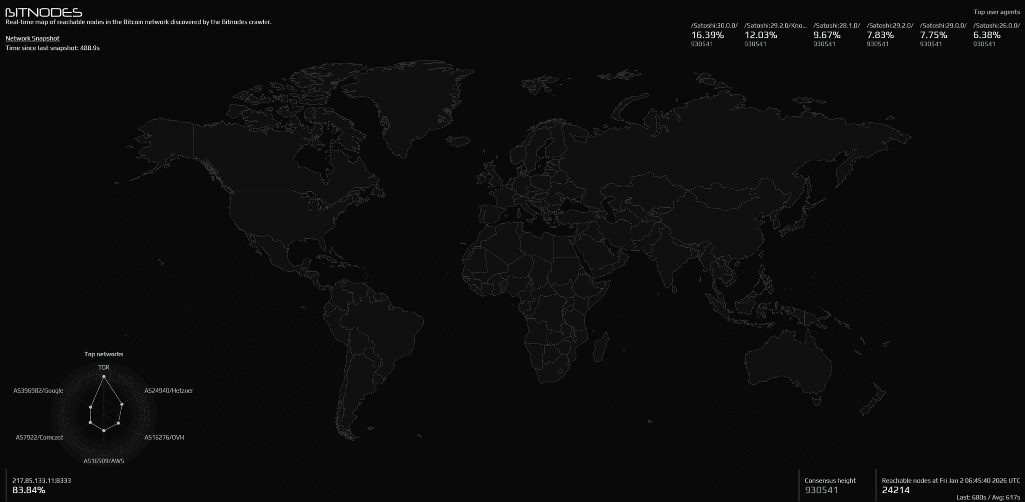 - 24,433 nodes reachable worldwide (as of Jan. 2, 2026)