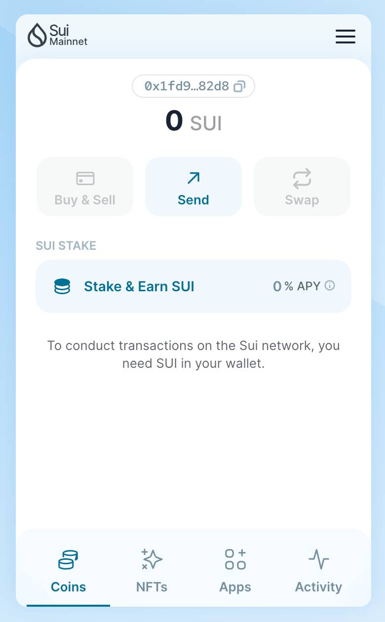 Now that you’re equipped with the basics of the Sui network, creating a wallet compatible with the Sui network is the first step towards interacting with the ecosystem. Since Sui runs on a separate virtual machine from EVM, your Ethereum addresses are no good here.