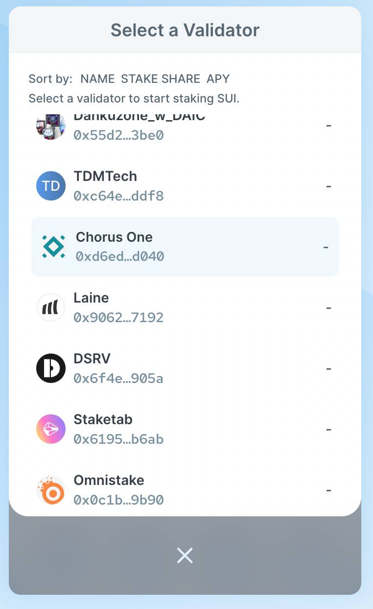 Sui Validator Selection for Staking | Image via Chorus.oneInteracting with Sui