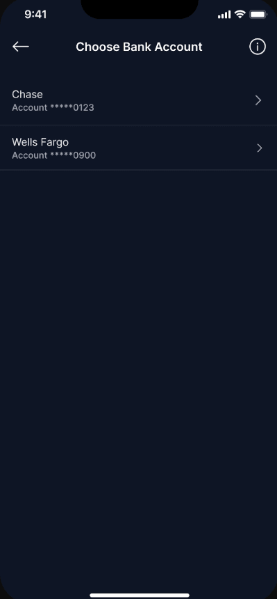 - Tap Withdraw > Bank Account > Select ACH US bank.