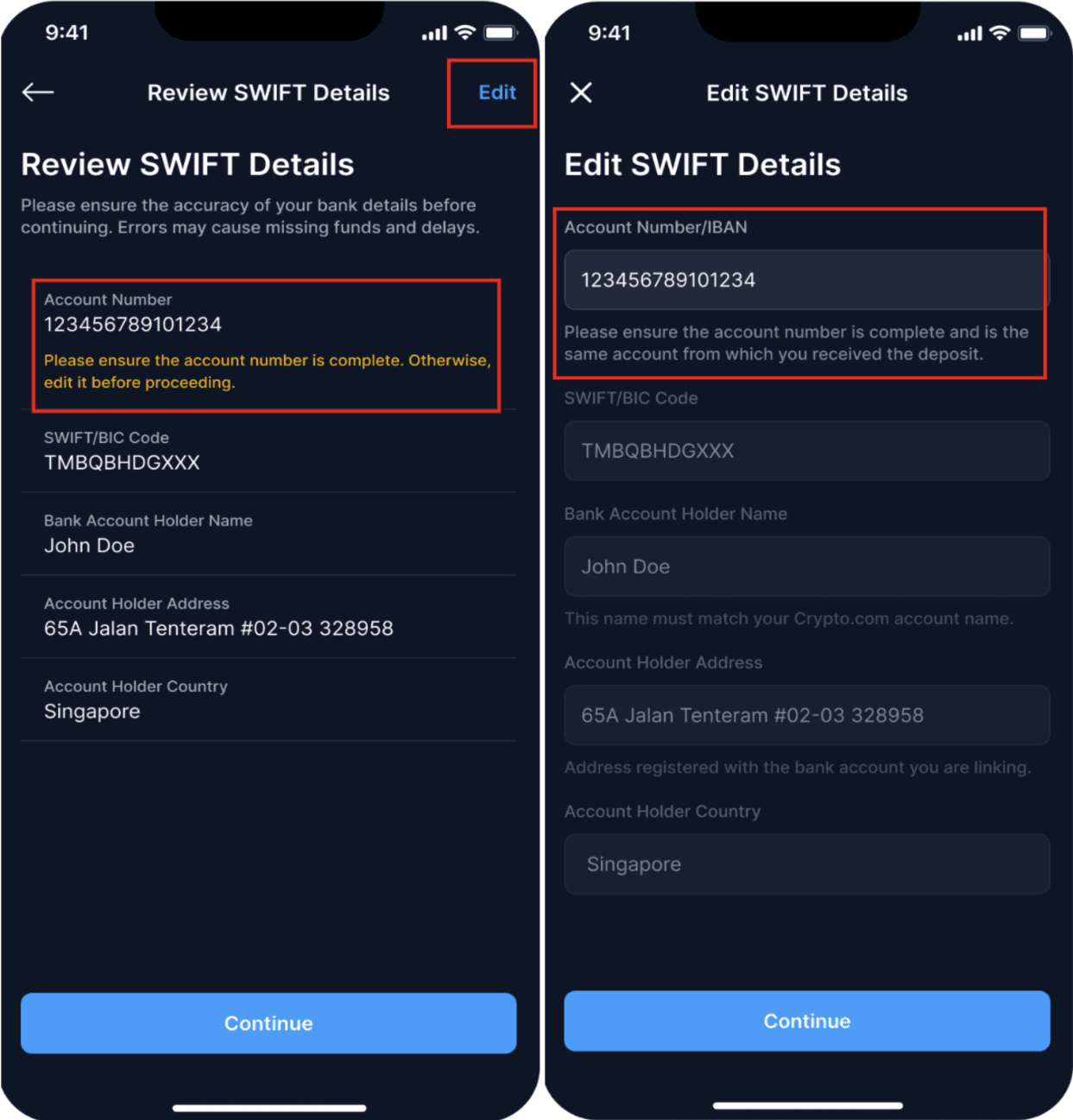 - Confirm all bank/wallet details are correct and comply with Crypto.com’s supported formats.
