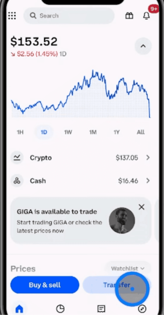 Step 1: Open your Wallet App and select Transfer