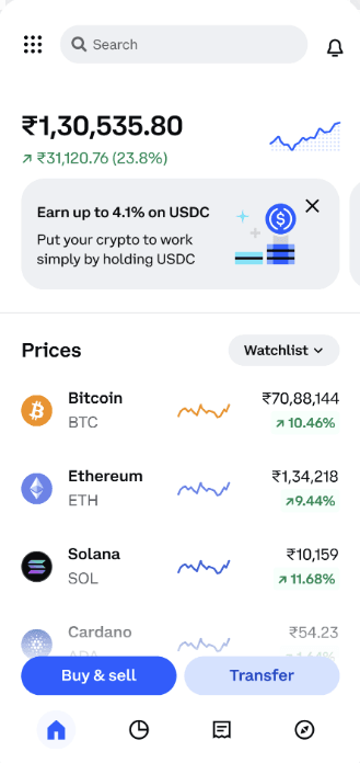 - Step 1: Open the Coinbase app and tap Assets.