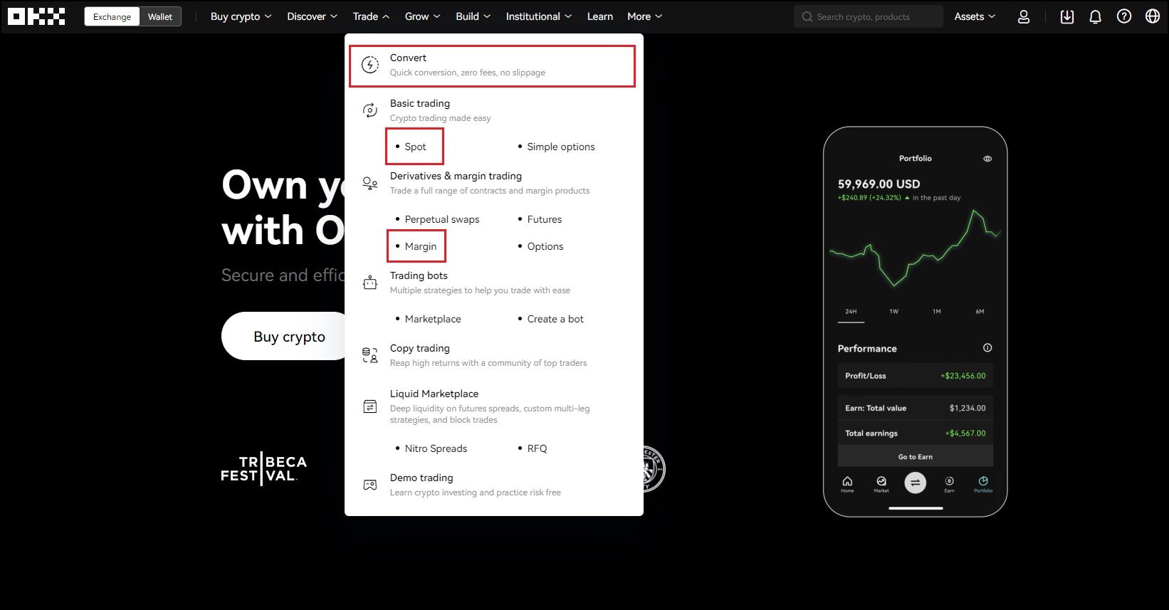 The OKX Exchange Supports Several Trading Options. Image via OKXOKX Convert