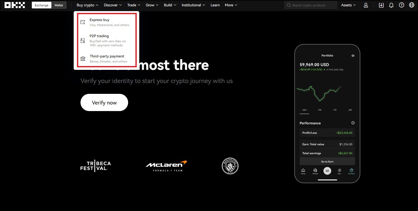 OKX is a Seychelles-headquartered Cryptocurrency Exchange. Image via OKXOnce registered, you can deposit funds through fiat or crypto channels and use them to trade cryptocurrencies, participate in DeFi, or buy NFTs on the exchange. Let's get into these steps in detail.