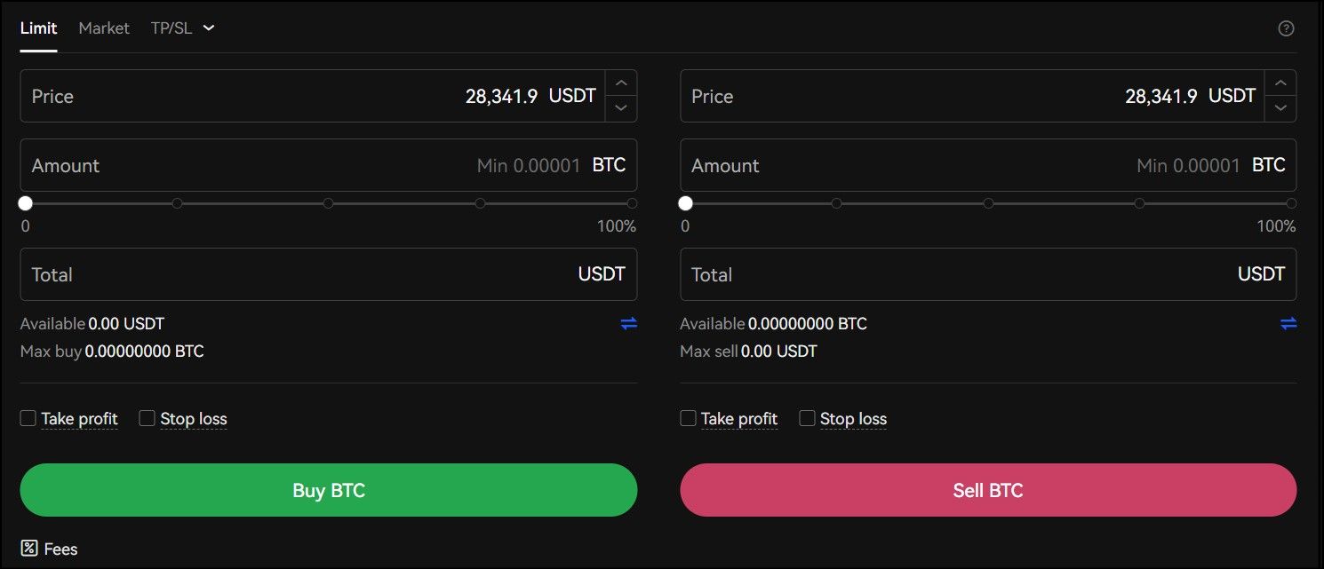 What a Spot Order Screen on OKX Looks Like. Image via OKX