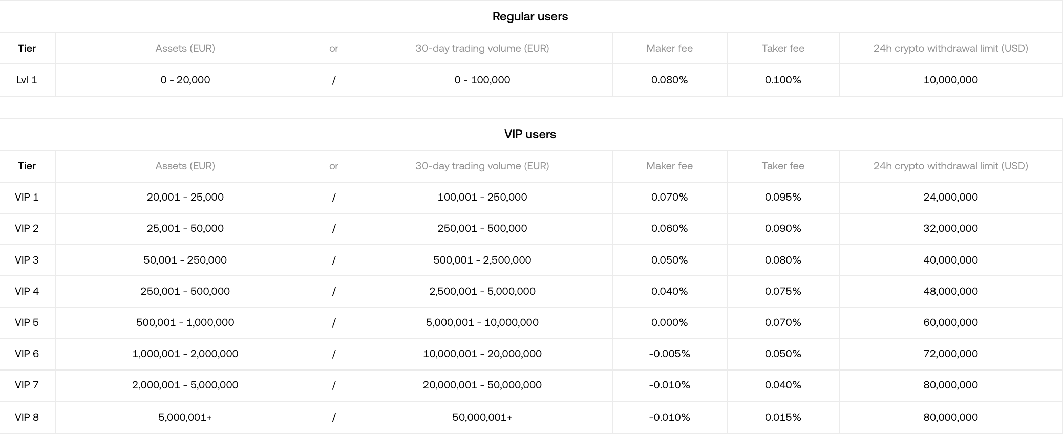 OKX charges some of the lowest fees in the industry. It adopts a tiered approach that depends on the number of OKB tokens the user owns. Holding more OKB promotes you to a higher tier and reduces trading fees. Here is a snapshot of the latest tiers at the time of writing. However, fees are subject to revisions, and I suggest you verify the latest value on the OKX Fees Page.