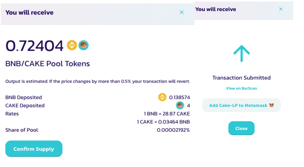 Check everything looks good and click Confirm Supply Once you have the LP tokens in your wallet, it's time for it to earn its keep by putting it to work in a ...