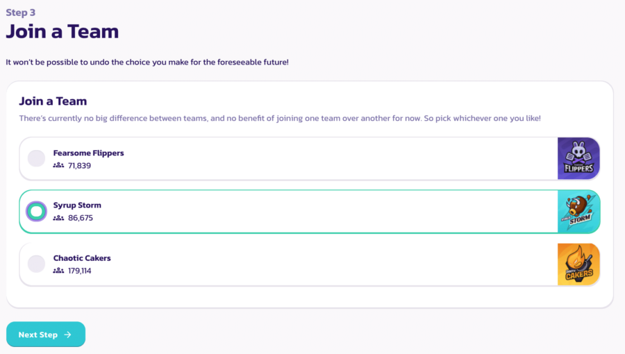 Sunny is gonna be me :) The next step is to join a team. There isn't a lot of information about the teams, so it's entirely up to you which one you choose. As of now, there aren't any special benefits but this choice can't be undone. Choose whichever tickles your fancy and click Next Step.