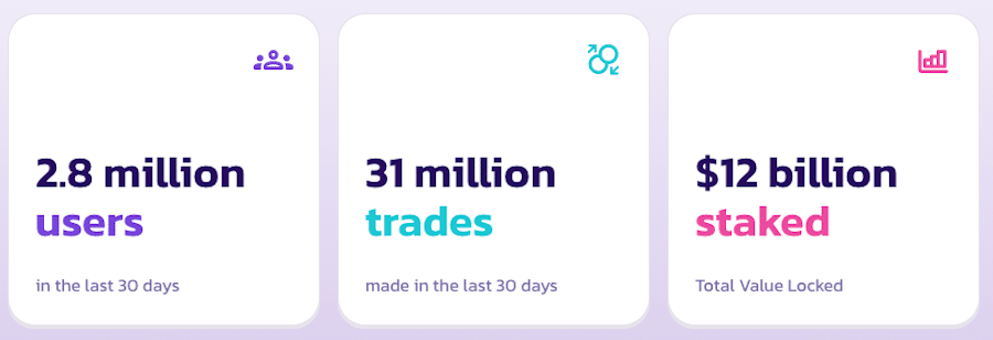 PancakeSwap is one of the top DeFi protocols on the Binance Smart Chain with some decent metrics. BNB tokens are used to pay for gas fees on this protocol. Users are rewarded with their native token CAKE that allows them to participate more fully by voting, playing lottery, and making predictions, just to name a few.