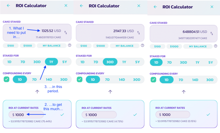 Look how much I can get for doing nothing!Another cool feature about the calculator icon next to it lets you key in your desired ROI so you can see how many tokens you would need to stake to make that amount of money.