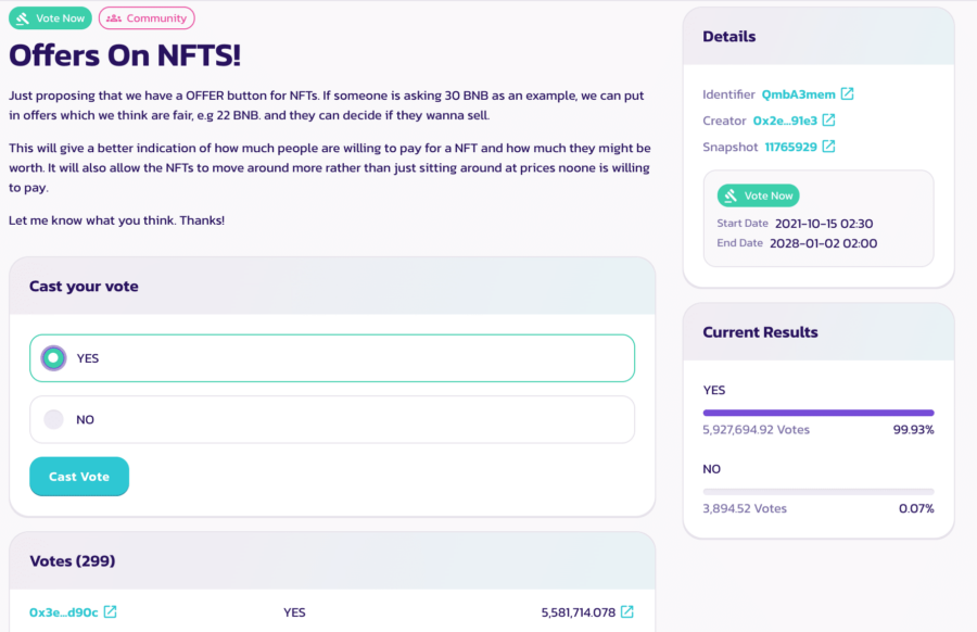Oh, and always have enough CAKE to be able to vote in proposals that appeal to you. True decentralisation requires everyone to do their own bit, so if you like the platform to stay healthy, please vote.