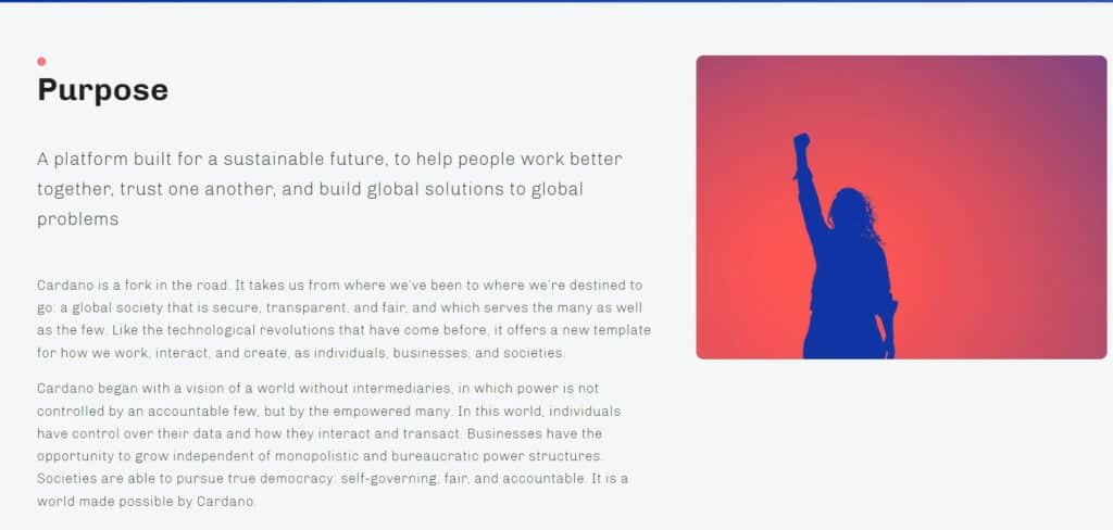 A Look at the Cardano Homepage. Image via Cardano.orgCardano combines pioneering technologies that provide the highest level of security attainable in blockchain, while being sustainably decentralized, eco-friendly, and aims to benefit applications, systems, and societies. Cardano claims that it overcomes problems faced by other blockchain networks and meets scalability, interoperability, and regulatory needs in the industry.