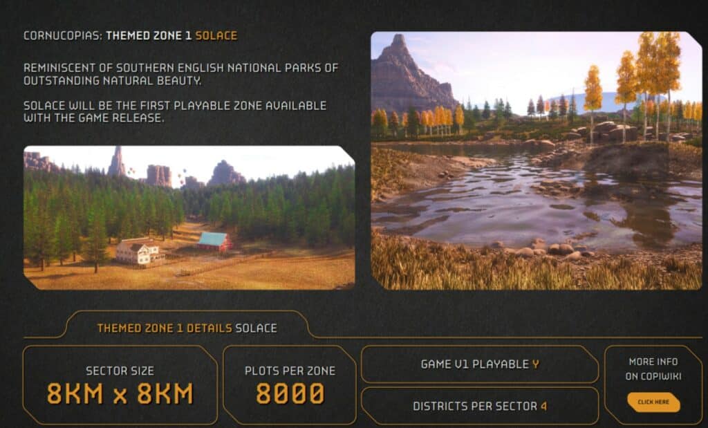 Cornucopias Themed Zone Land. Image via Cornucopias.ioCornucopias combines gaming with real-world commerce and provides potentially limitless opportunities for entrepreneurs, builders, designers, and gamers. This metaverse can be entered by anyone in the world, including brands and companies who may wish to set up shop in this Cardano-powered metaverse. The sheer earning potential of this game and endless possibilities are one of the key reasons Cornucopias is one of the most promising and exciting metaverse projects that caught my attention.