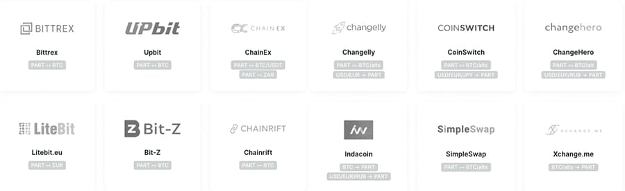 Some of the Exchanges and Services to buy PARTHow do you square the circle when it comes to regulatory oversight and facilitating anonymous private marketplaces?