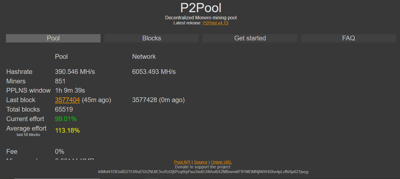 | P2Pool | 403.60 MH/s (6.7%) | 0% | 0.00185 XMR | Decentralized P2P | PPLNS | Decentralization purists |