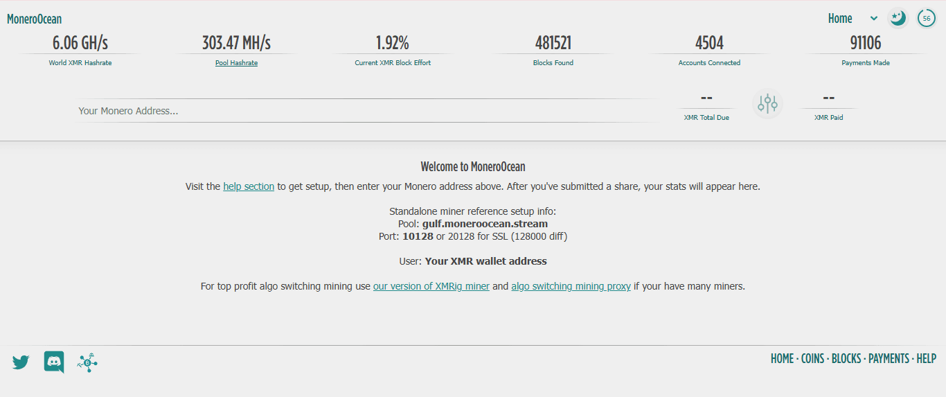 | MoneroOcean | 296.78 MH/s (4.9%) | 0% | 0.003 XMR | Global | PPLNS | Algo-switching, low fees |