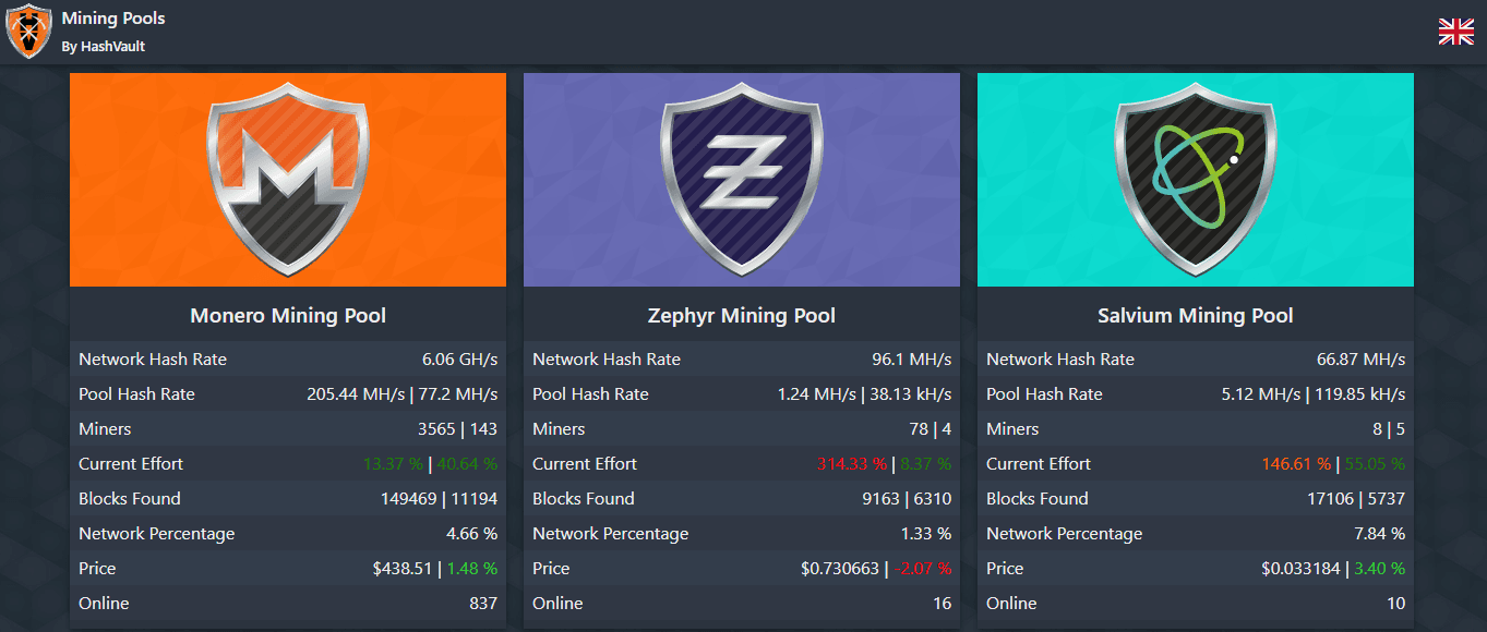 | HashVault | 219.99 MH/s (3.6%) | 0.9% | Adjustable | EU-focused | PPLNS | Privacy-focused miners |