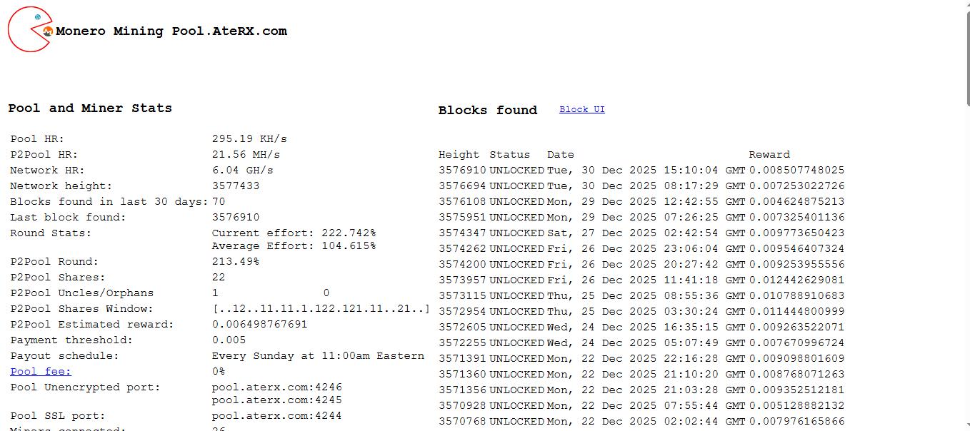 - Payment Method: PPLNS with reliable auto-payouts.