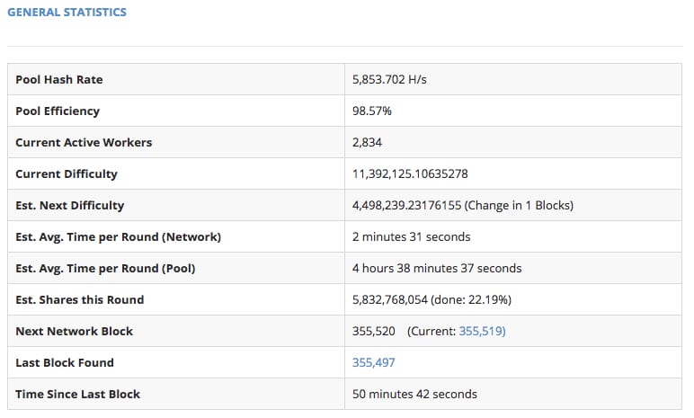 Suprnova is another fairly new ZCash pool, although they do offer pools for other coins for some time. The hash rate is just 5.8 MH/s, but that’s enough for the pool to regularly find blocks. You can mine anonymously, and the pool uses the familiar PPLNS payment system.