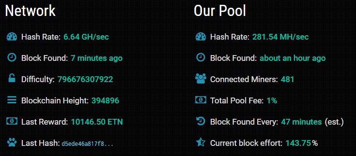 Spacepools is one of the oldest Electroneum mining pools and it was previously hosted at http://pool.electroneum.space. It isn’t the largest pool by far, but it also isn’t the smallest, with well over 1,000 miners controlling a bit less than 10% of the network hash rate. This has them finding a block roughly every hour.
