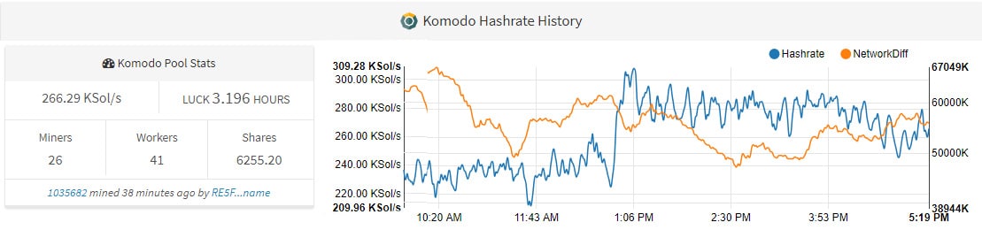 Komodo Mining Pool is the oldest and one of the largest mining pools out there for Komodo. It consistently has more than 40% of the hashing power, making it one of the pools you should actually avoid if you want to maintain a decentralized and secure network.