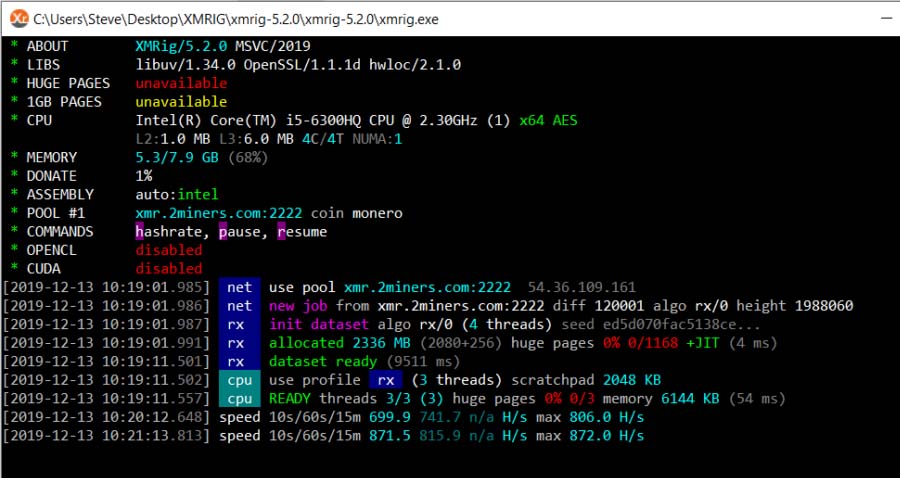 Step 4: Optimal XMRIG Config SettingsSave and close the file and then double-click the xmrig.exe file to start the miner. You will get a command prompt that opens and the miner will be running.