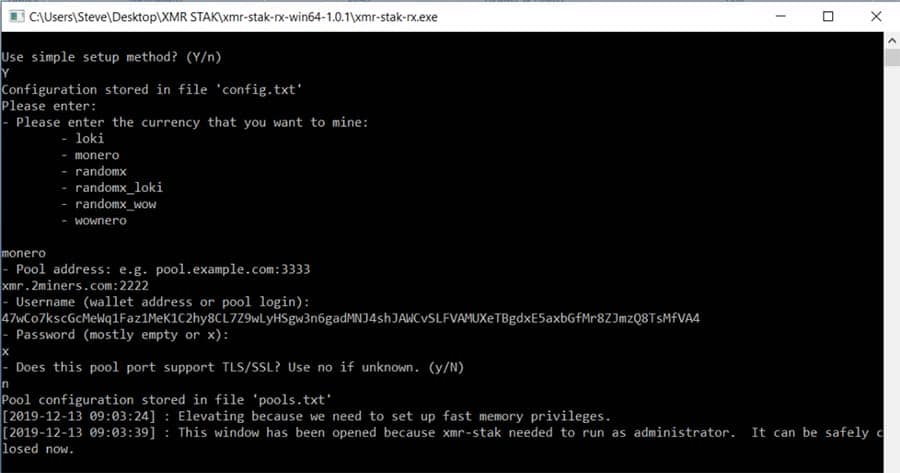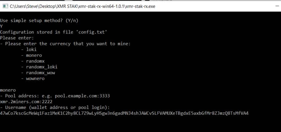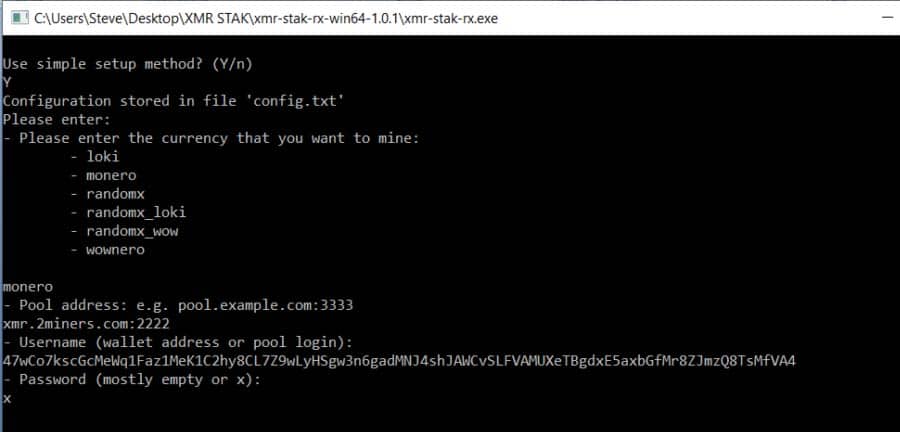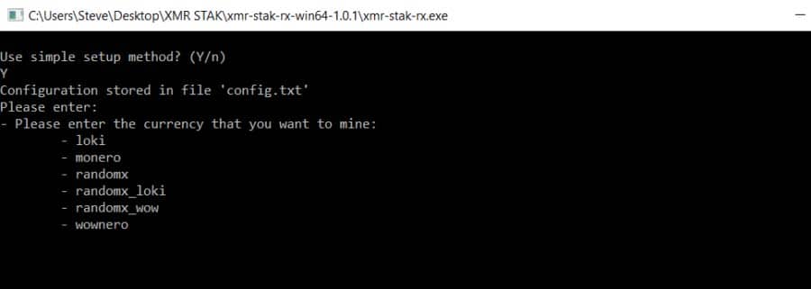 Step 3: Simple SetupYou will be asked which currency you wish to mine. Type ‘monero’ and press enter.
