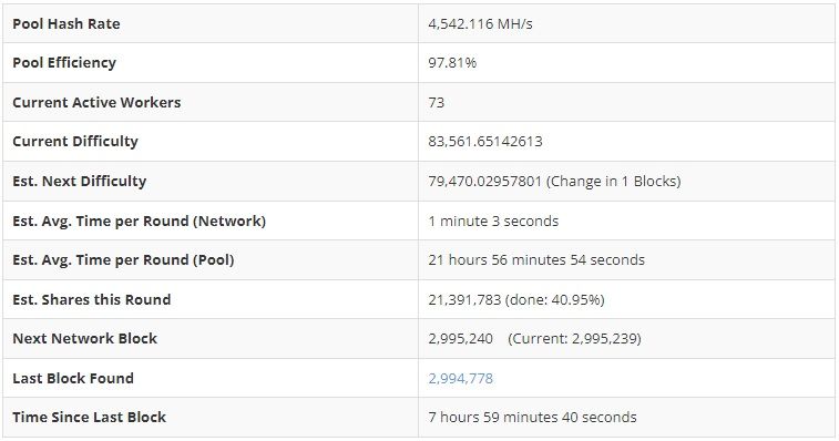 Suprnova Ravencoin Mining Pool Statistics. Image via SuprnovaWhen I looked, there were just 73 workers on the pool and the last block was minted about eight hours ago. They have an average mining fee of 1% and servers located around the world.