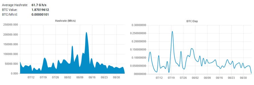 Block Masters Lyra2rev2 Pool Stats over past 30 daysIt also has a fairly large number of miners and hash rate, and global servers. I wasn’t able to find uptime information, but it is a favored site among Verge miners so you can bet that it is at or near 100%. Some other options for mining Verge with Lyra2rev2 are: