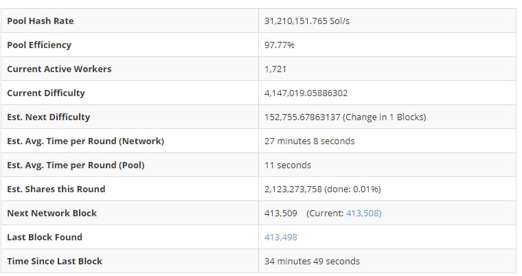 Zhash.pro is a pool we haven’t come across before, but it is the number one pool when it comes to mining ZEN, controlling roughly 25%-30% of the hash power. It’s not too surprising that it has become the most popular ZEN mining pool since it features extremely low 0.5% fees, auto-payouts at just 0.1 ZEN and global dedicated servers.