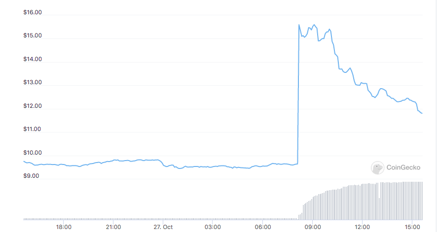 Aave did a 35% rally after the listing but has since given up most of its gains and is now trading at $355 at the time of writing. MASK on the other hand spiked sharply from $9.64 to $15.60 and has been slowly trending down since.