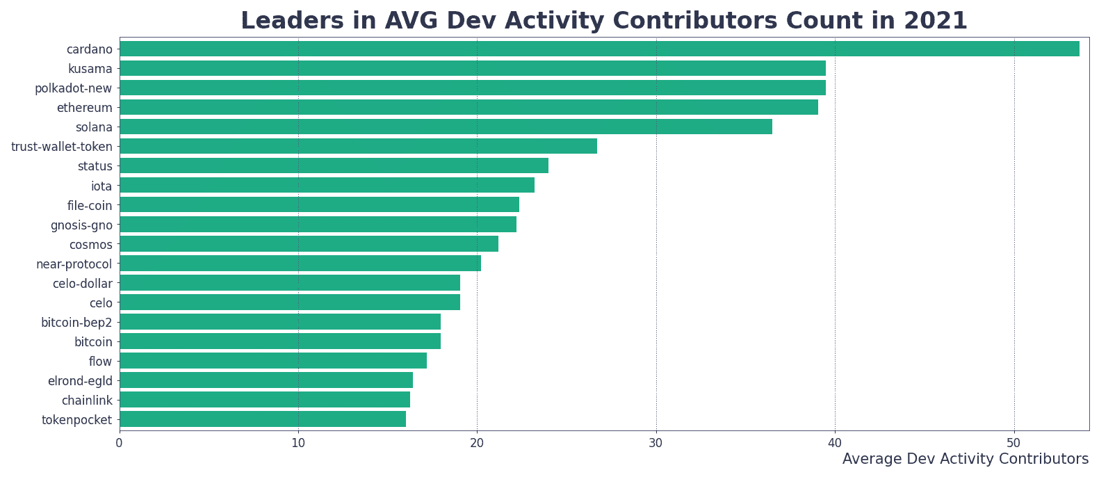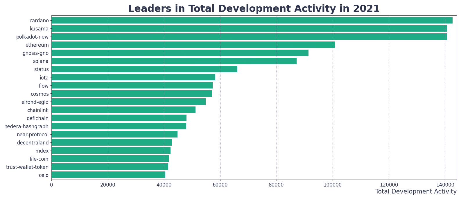 “As evident, the top 3 projects - Cardano, Kusama and Polkadot are virtually neck and neck, followed by Ethereum at #4 and Gnosis at #5. For the first time on one of these end-of-year development reports, we also have an NFT-centric project in Flow to round out the top 10, highlighting the meteoric growth of the NFT sector in the last year."