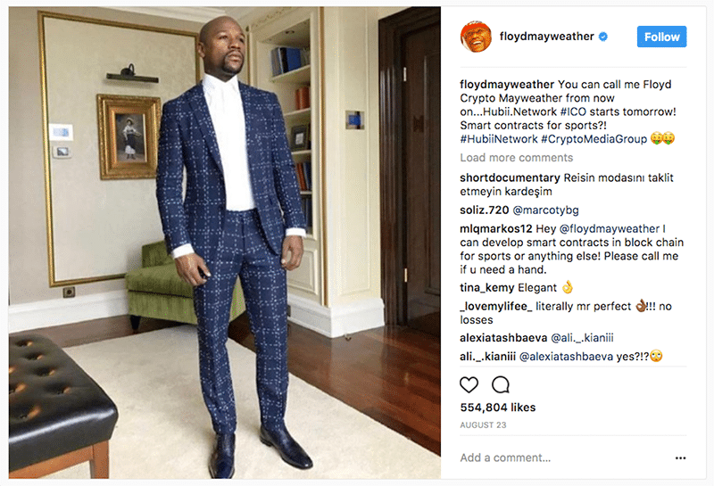 Support for Stox – which has so far raised over $30 million, despite its rather vague business plan – has also been championed by Barcelona striker Luis Suarez, whilst Mayweather has also leant his weight to the Hubii Networks ICO. Perhaps unsurprisingly for someone who dubs himself ‘The Money’, Mayweather’s latest interest has seen him pledge his support on Twitter for cryptocurrency ICO Centra. He can’t seem to get enough, it seems.