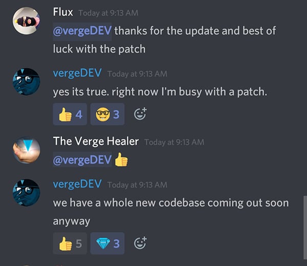 When this was brought to the attention of the Verge developers, they first claimed that there was nothing to correct. However, after the clear demonstration of the attack they pushed a "fix" and issued a tweet.