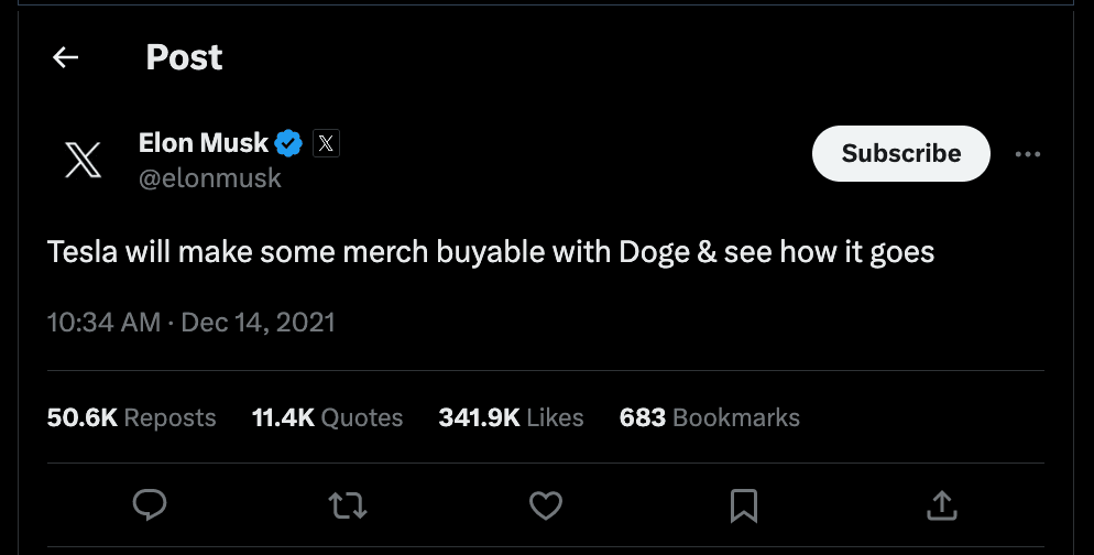 In early October, Musk sparked a 200% rally in Shiba Inu (SHIB) simply for tweeting a photo of his puppy. Before that, the billionaire was largely credited with bringing Dogecoin into the mainstream. He once triggered an 863% rally in DOGE for tweeting a meme.