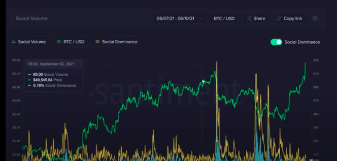 Santiment suggests that Bitcoin's rally from the $30,000 range up to $55,000 was largely fueled by market wide skepticism and fear, and that many dips are triggered by euphoria and optimism. According to the firm, Bitcoin's general social sentiment has flipped positive again, but nowhere near the extremes seen shortly before the collapse in May.