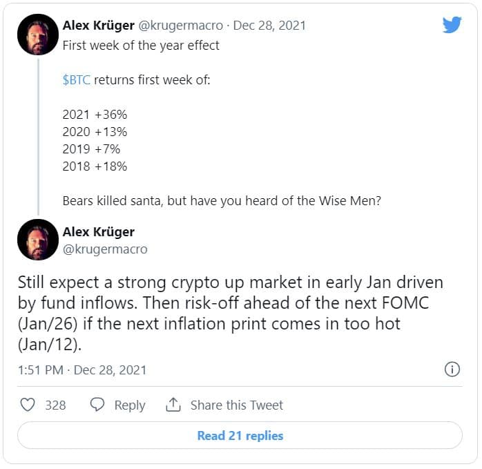 Economist and crypto trade Alex Kruger calls this the “first week of the year effect.”