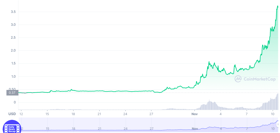 While there is no official announcement from either Loopring or GameStop, the markets don’t care. Following the spread of the rumor in late October, LRC took off from a starting price of around $0.38. It is now sitting $3.74 with no signs of slowing down as of yet.
