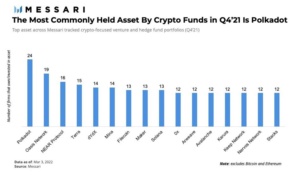Interoperable blockchain Polkadot is the most widely held altcoin among venture capital firms and hedge funds, according to a report from Messari.