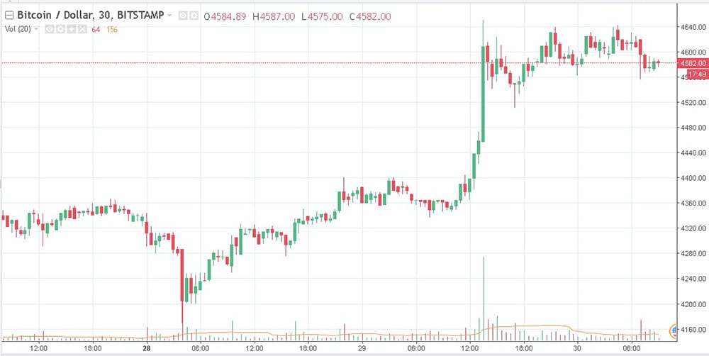 The price of Bitcoin had first crossed over the $4,400 mark on the 15th of August but was stopped short of the resistance level of $4,500. This seemed to be a key psychological level for investors that forced many to liquidate holdings just prior to reaching it.