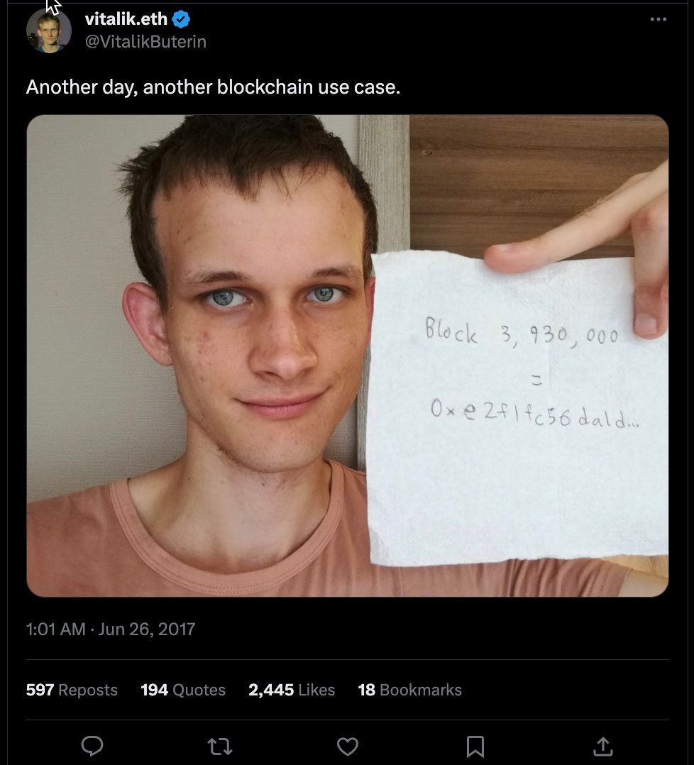 In the tweet by Vitalik, a user responded with an image of Vitalik holding up a piece of paper. For those who may not know, this was the image that Vitalik shared last year to prove that he was not killed in a car accident contrary to rumours.