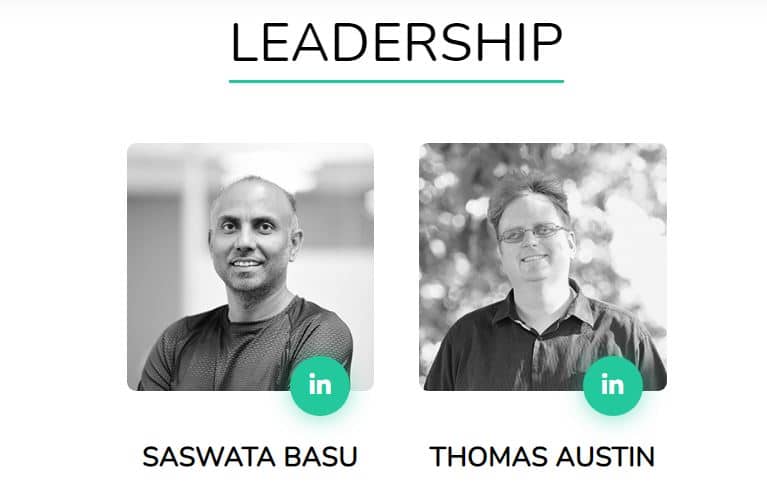 The 0Chain co-founders. Image via 0Chain.net Saswata Basu is the founder and CEO of 0Chain and a visionary entrepreneur with over 20 years experience in artificial intelligence, internet of things, blockchain technologies, cloud technologies and wireless technologies. He holds both an MS and a PhD from UCLA and has previously worked for Intel, GuruHubb, Harris, Nortel, Aviat, and Energous.