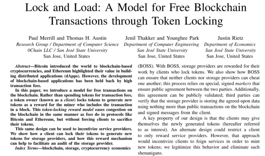 Token Locking yields free transactions. Fascinating! Image via 0Chain.net 0Chain is addressing this issue by creating free transactions through a process called “token locking.” Rather than spending tokens for transaction fees, a token owner (known as a client) locks tokens to generate new tokens as a reward for the miner who includes the transaction in a block.