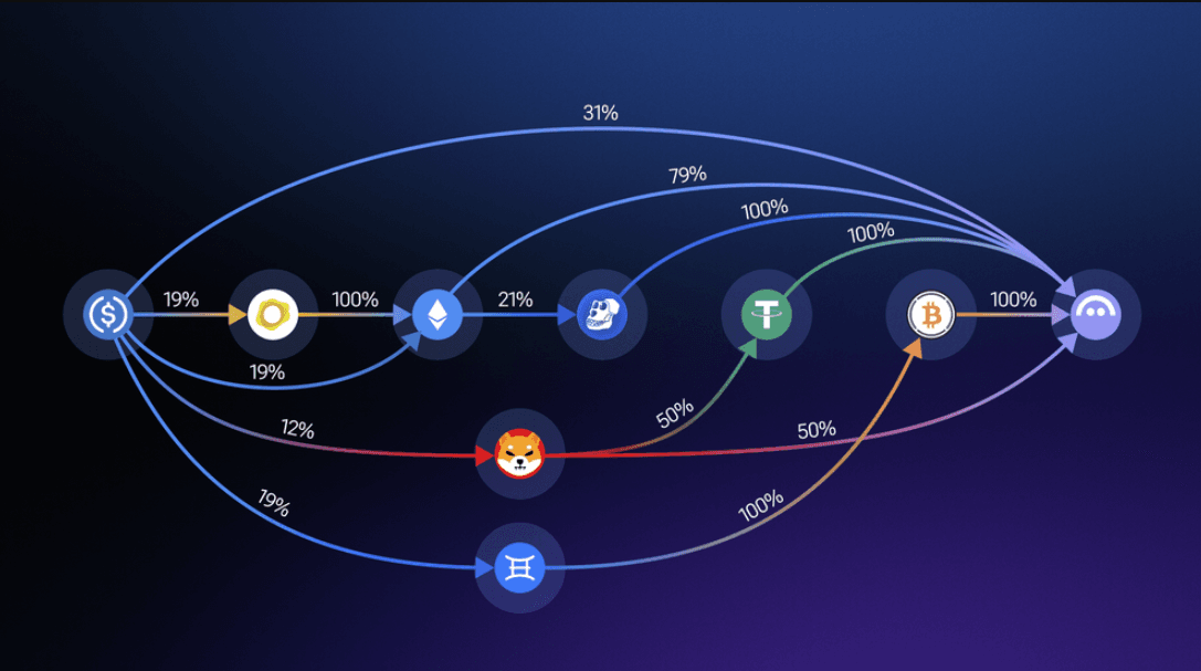 Pathfinder is the engine behind 1inch’s routing advantage. In its current iteration, it scans more than 500 liquidity sources across 13 chains in real time. Rather than checking a handful of routes, it evaluates millions of possible combinations using combinatorial algorithms that weigh token prices, gas forecasts, pool depths, and historical execution success.