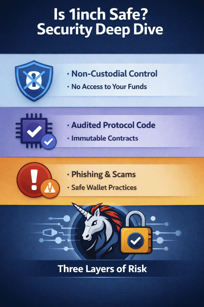 Scores reflect 1inch’s strength as an execution layer: strong routing + intent-based tools, with the usual DeFi tradeoffs around self-custody and approvals.
