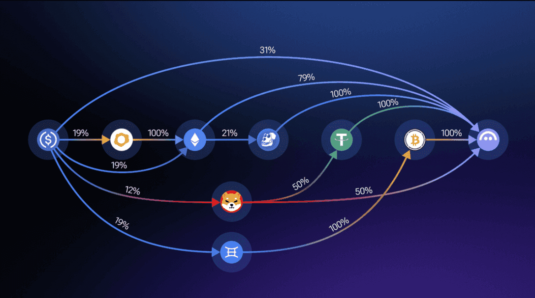 At the center of this process is 1inch’s Pathfinder routing algorithm. Instead of checking one or two venues, Pathfinder evaluates thousands of possible routes simultaneously. It weighs liquidity depth, live pricing, gas overhead, and your selected slippage tolerance, then determines whether splitting the order produces a better outcome than routing it through a single DEX. Here's how it looks: