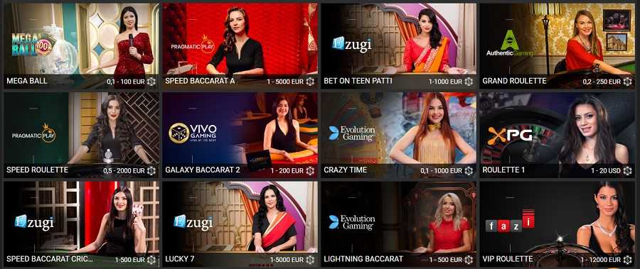 - Live Casino, featuring classic gambling games including Blackjack, Baccarat, Poker, and Roulette
