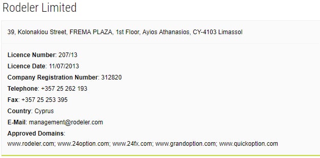 In Europe, they operate under Rodeler Limited as the holding company. They also have a holding company that is based in Belize called Richfield Capital limited. The latter company services their non-EU international clients.
