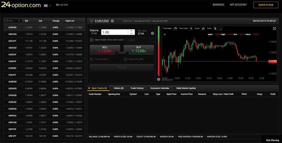 Those more advanced traders among you will be pleased to know that 24option also offers an MT4 platform.